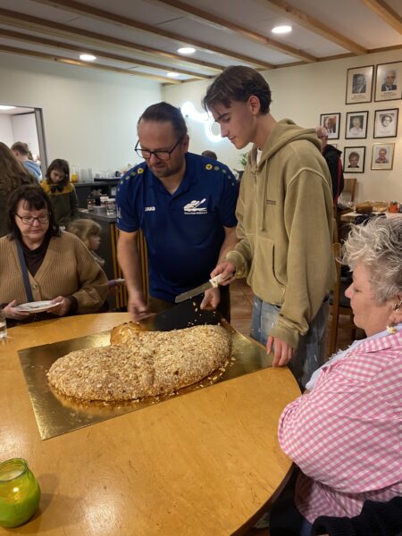 Unser diesjähriges Lichterfest am 15. November war wieder ein voller Erfolg. Große und kleine Hände zauberten zahlreiche Leckereien, wie eine große Auswahl an selbstgemachten Kuchen, verschiedene Suppen und Kinderpunsch. Die traditionellen Weckmänner in „Kanu-Form“ waren selbstverständlich dabei, sowie ein riesiger und ganz besonderer Weckmann, welcher feierlich angeschnitten und verteilt wurde.